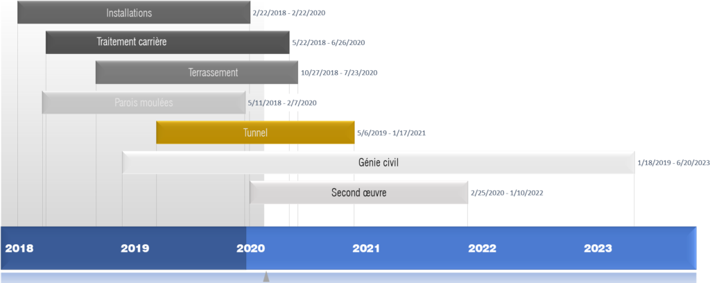 Durée des travaux (y compris période de 3 mois de préparation) : 64 mois.