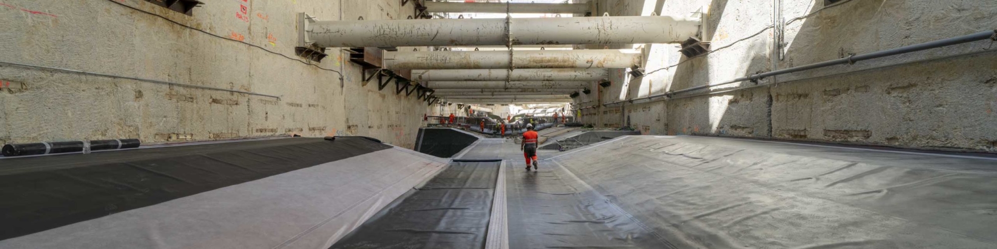 Le tunnel entre l’ouvrage annexe Jean Prouvé et la gare Maison Blanche-Paris – Linéaire de 4,6 km forés en Øint 7,75m avec un tunnelier à pression de terre ;
