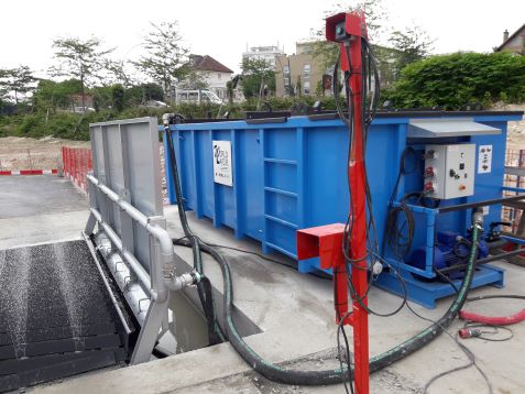 Laveur de roue avec jet d’eau, bac de décantation et pompes déportée 25ml.
